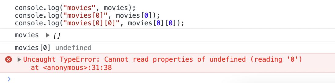 하지만 movies를 출력해보면 잘 찍혀 나왔지만, movies[0]을 하면 undifined가 나왔다.